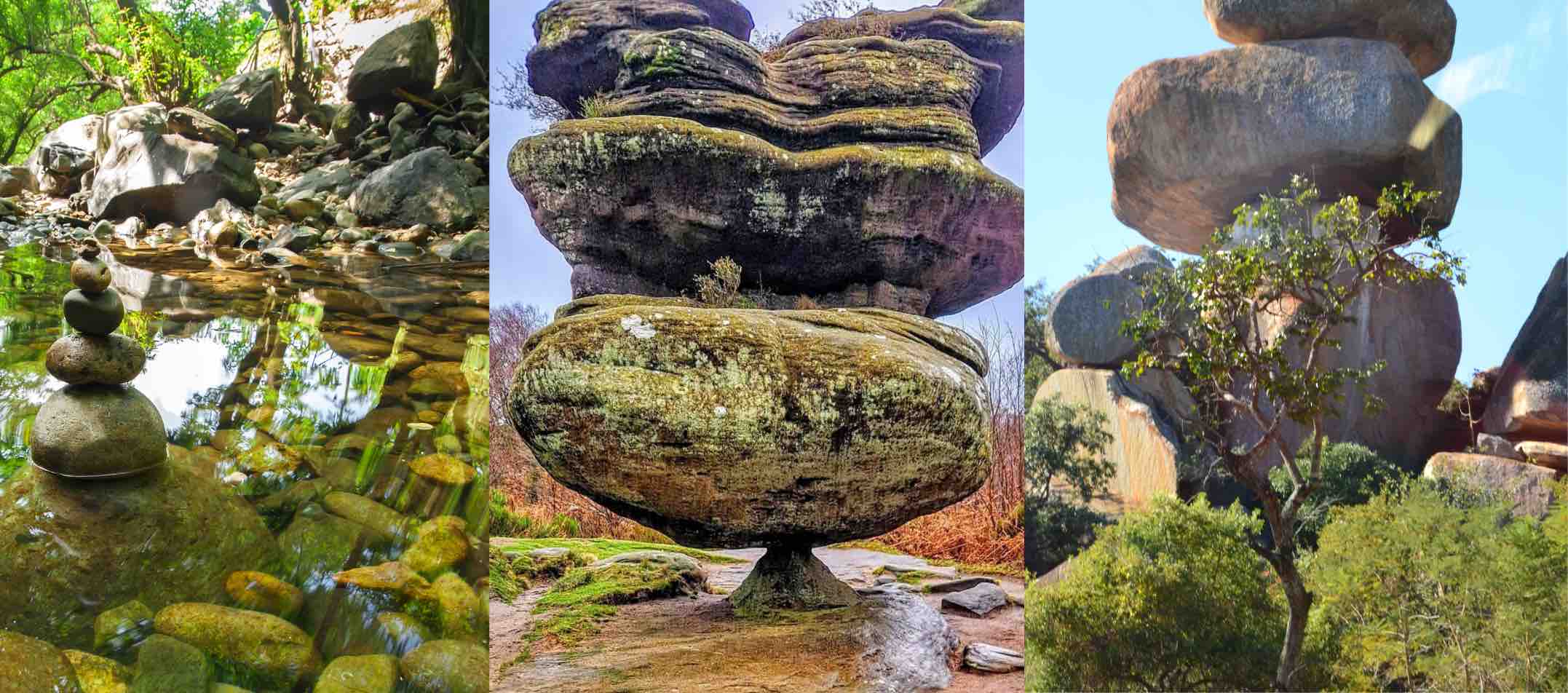 Harmoniously integrating rock balancing with gardens ,waterfalls creates captivating, tranquil outdoor spaces.